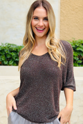 The Born to Sparkle Top is designed to bring effortless glamour to every moment. Crafted in Italy from a lightweight shimmering knit, it drapes beautifully with a relaxed silhouette that flatters all body shapes. The soft v-neckline and flowing sleeves create an elegant, feminine line, while the subtle glimmer of the fabric ensures you shine with understated sophistication.