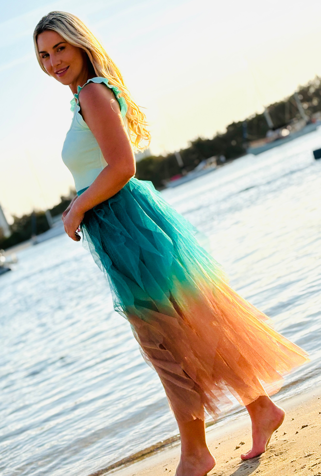 Pinch Me Pretty Skirt - Tangerine + Sky