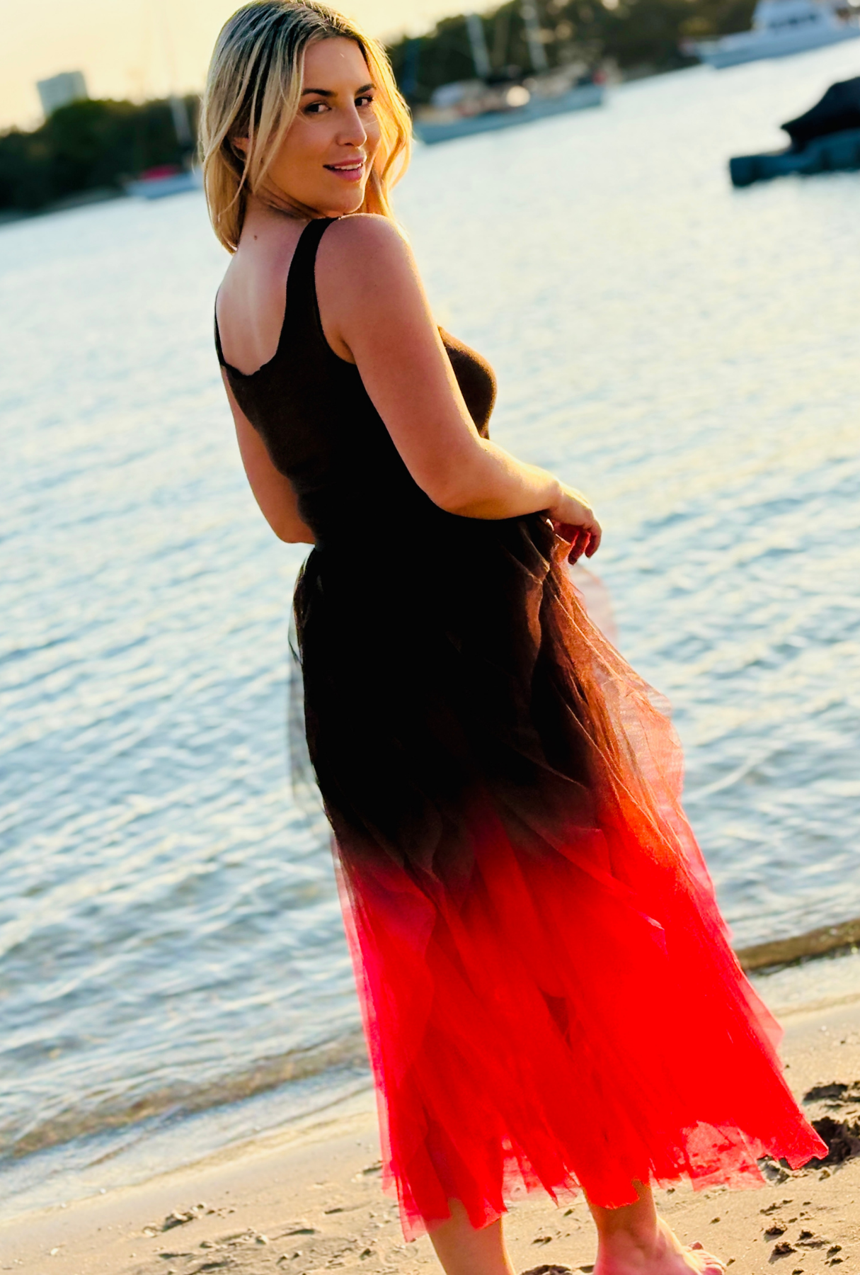 A masterpiece of movement and colour, the Split Personality Skirt is crafted from layers of hand-dyed tulle, creating a striking ombré effect that shifts seamlessly between shades. Each skirt is individually dyed by hand, making every piece a wearable work of art.