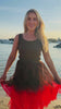 The cascading layers of soft, weightless tulle give it dramatic volume while remaining effortlessly light, flowing with every step. Finished with Palm Bee’s iconic gold bee embroidered on the waistband, this skirt is as much a statement as it is a signature.