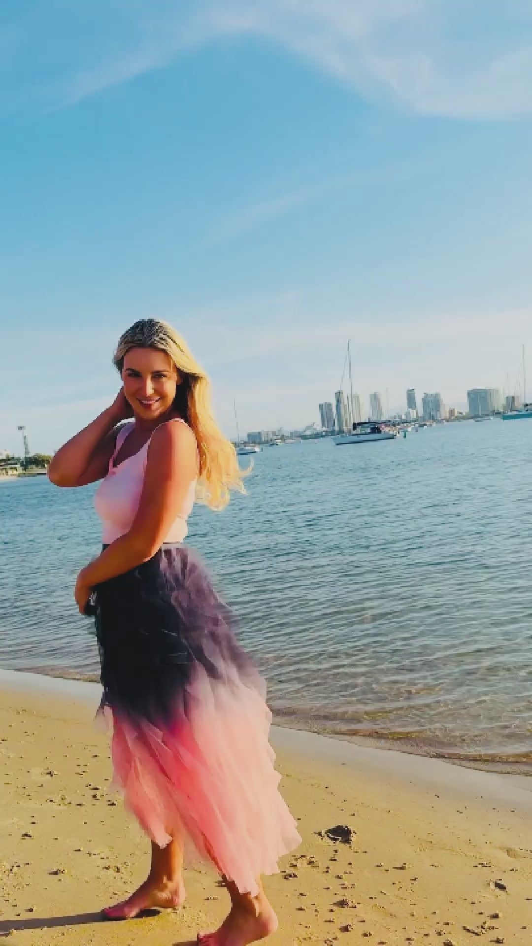 The cascading layers of soft, weightless tulle give it dramatic volume while remaining effortlessly light, flowing with every step. Finished with Palm Bee’s iconic gold bee embroidered on the waistband, this skirt is as much a statement as it is a signature.
