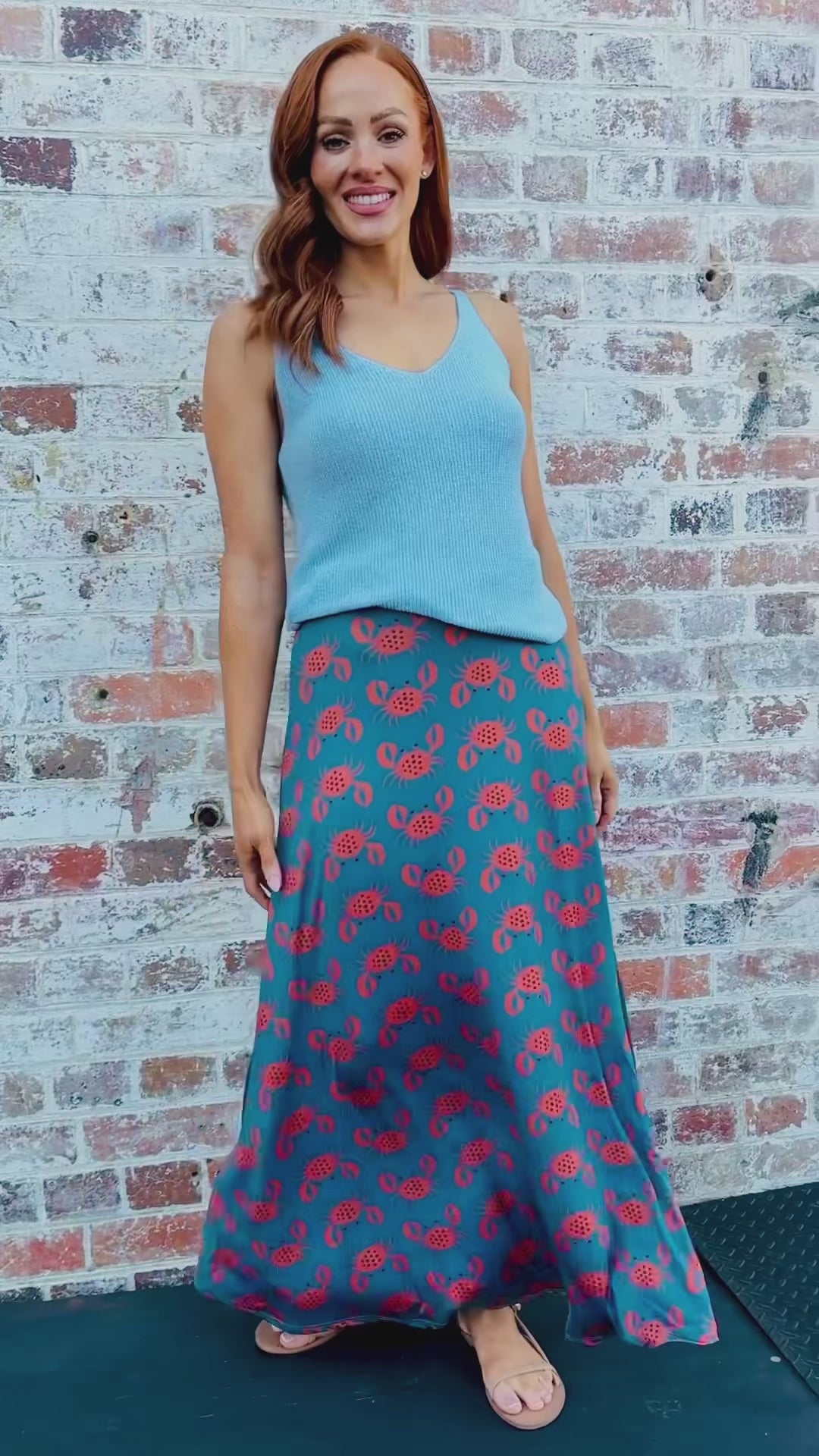 The Pinch Me Pretty Skirt is the must-have piece of the season. Made in Italy with playful detailing and flowing movement, it captures the essence of effortless European chic. Featuring a unique crab-inspired print, it adds a whimsical yet sophisticated touch that sets it apart from the ordinary.