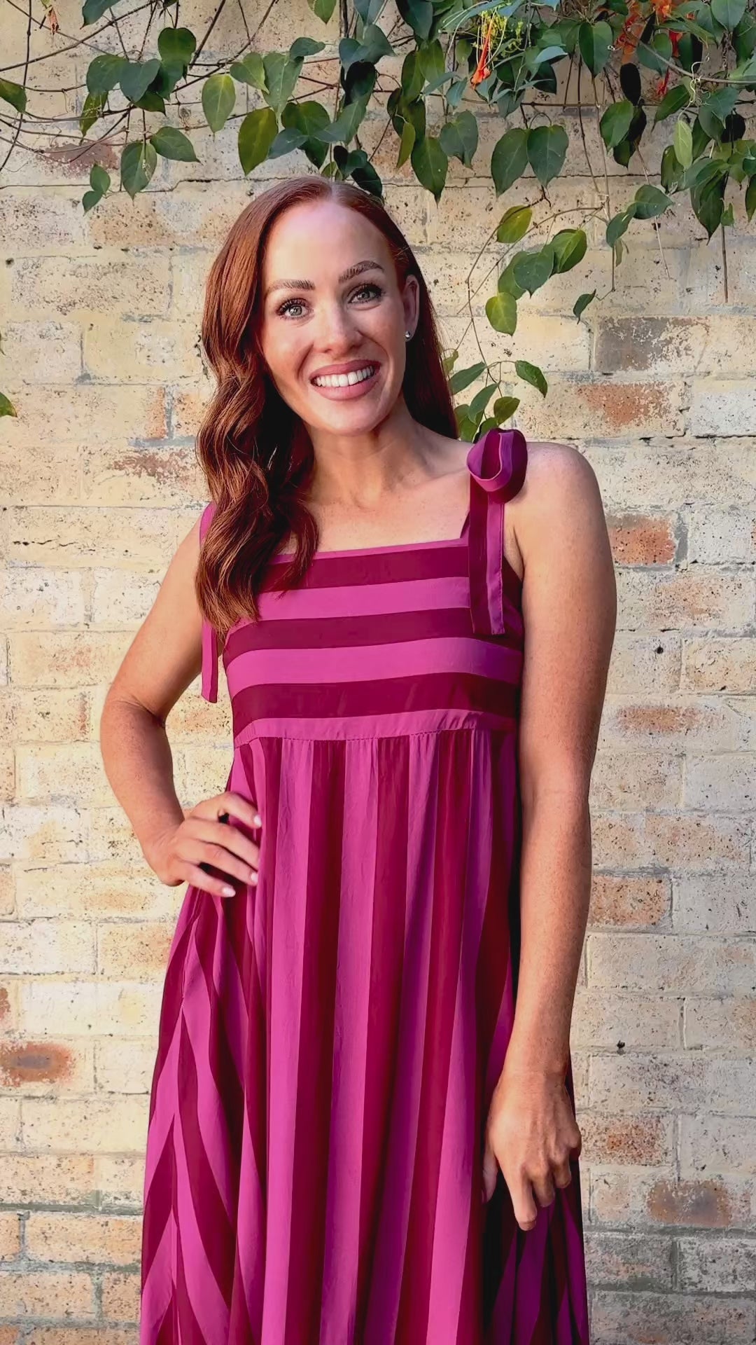The Ribbons and Daydreams Maxi Dress brings bold design together with effortless wearability. Crafted in Italy, its striking ribbon stripe pattern creates a statement silhouette that is both modern and timeless. The flowing cut offers a sense of movement and grace, while the adjustable shoulder straps allow for the perfect fit.