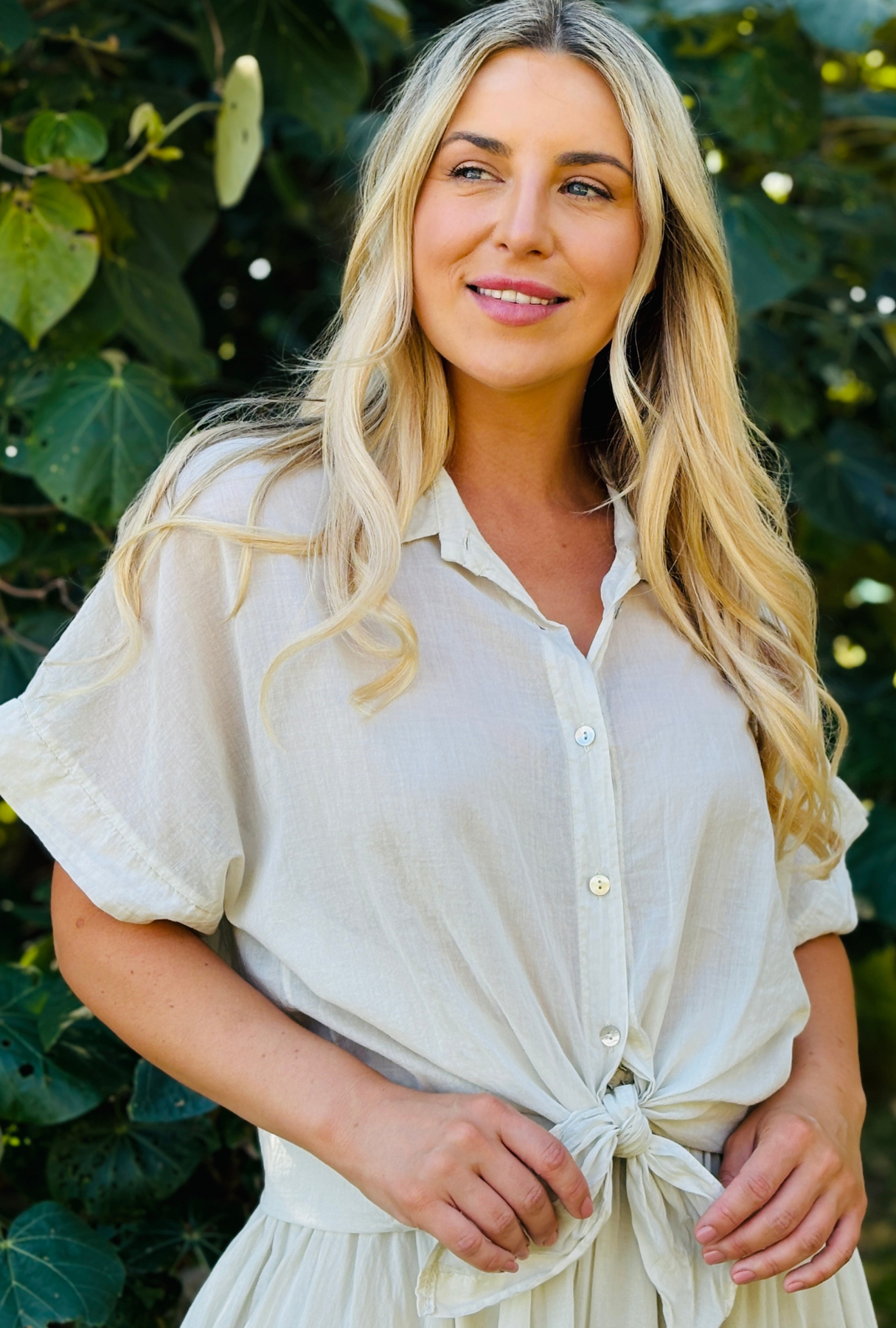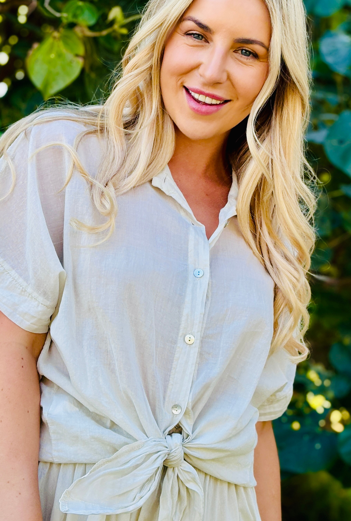 Elevate your wardrobe with theTie Me Up Top, a versatile Italian-made beauty that adapts effortlessly to your style. Crafted with impeccable attention to detail, this lightweight top is available in a variety of elegant shades, making it a staple for any occasion. Wear it tied for a playful, flattering look, tuck it in for polished sophistication, or leave it loose for relaxed, carefree vibes.