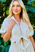 Pair it seamlessly with the matching pants or skirt to create a coordinated ensemble that exudes effortless chic. With its timeless design and endless styling options, theTie Me Up Topis your perfect partner for everything from casual strolls to sunset soirées. Let this piece redefine versatility in your wardrobe.