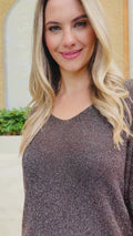 The Born to Sparkle Top is designed to bring effortless glamour to every moment. Crafted in Italy from a lightweight shimmering knit, it drapes beautifully with a relaxed silhouette that flatters all body shapes. The soft v-neckline and flowing sleeves create an elegant, feminine line, while the subtle glimmer of the fabric ensures you shine with understated sophistication.