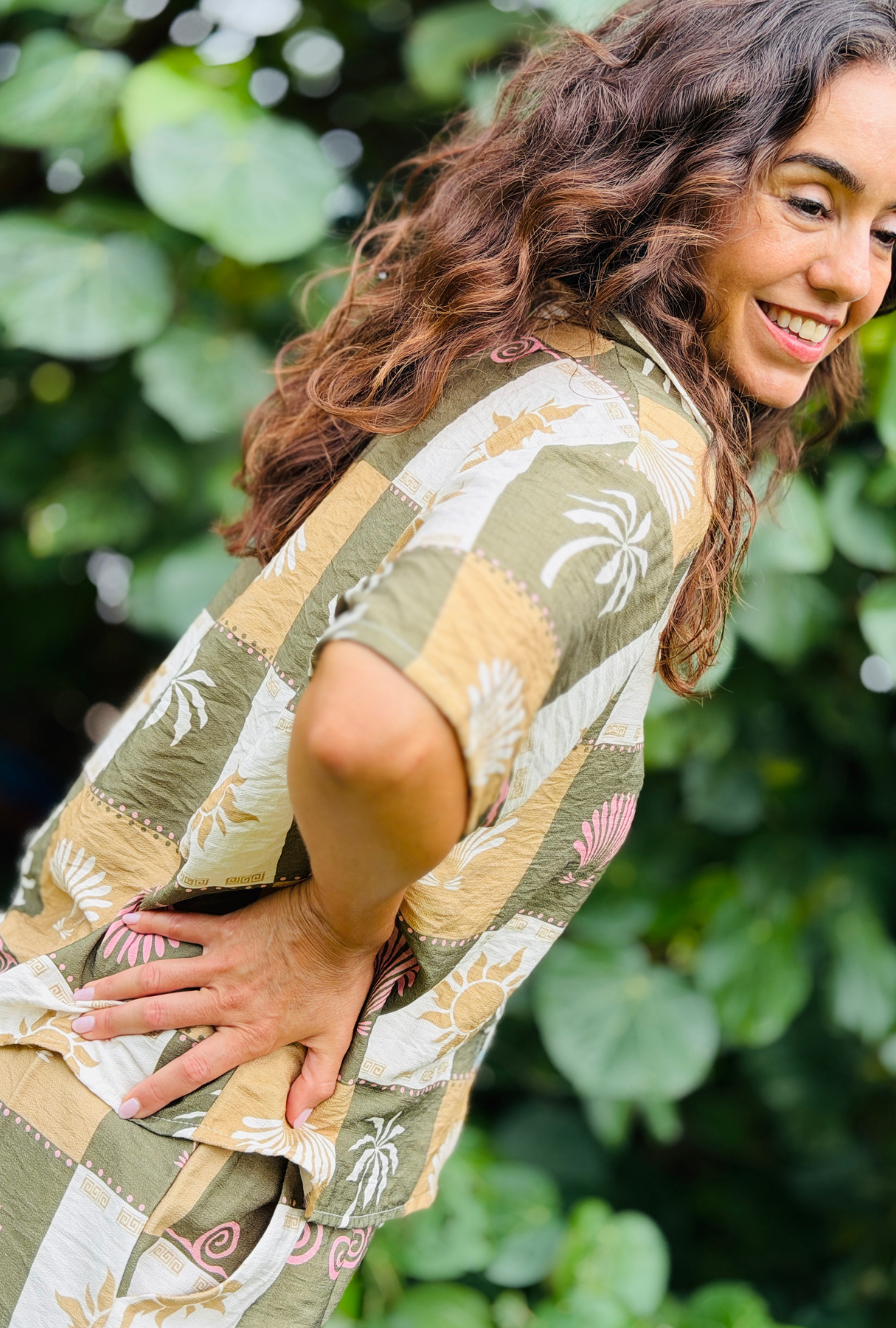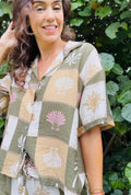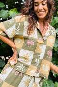 The Check Me Out Top combines relaxed tailoring with a striking patchwork print inspired by the sun, sea, and travel. Made in Italy from lightweight, breathable fabric, it drapes beautifully on the body while maintaining a soft, easy shape that remains comfortable throughout the day.