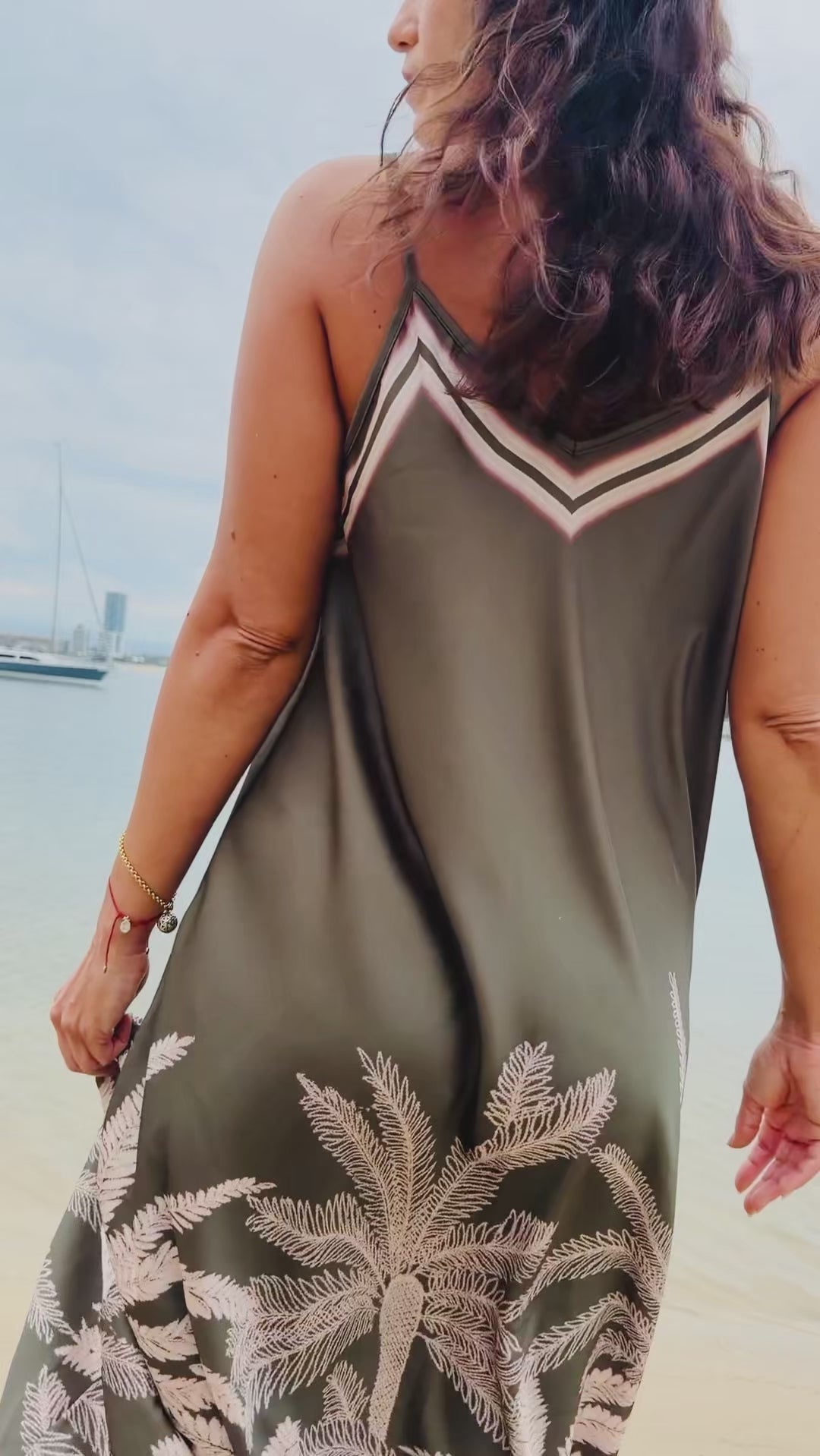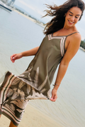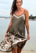 Featuring delicate shoulder straps, a relaxed silhouette and a statement palm motif through the hem, this dress flatters without clinging and allows natural movement with every step. The contrast border detailing adds a polished finish, elevating the overall look while keeping it easy to wear.