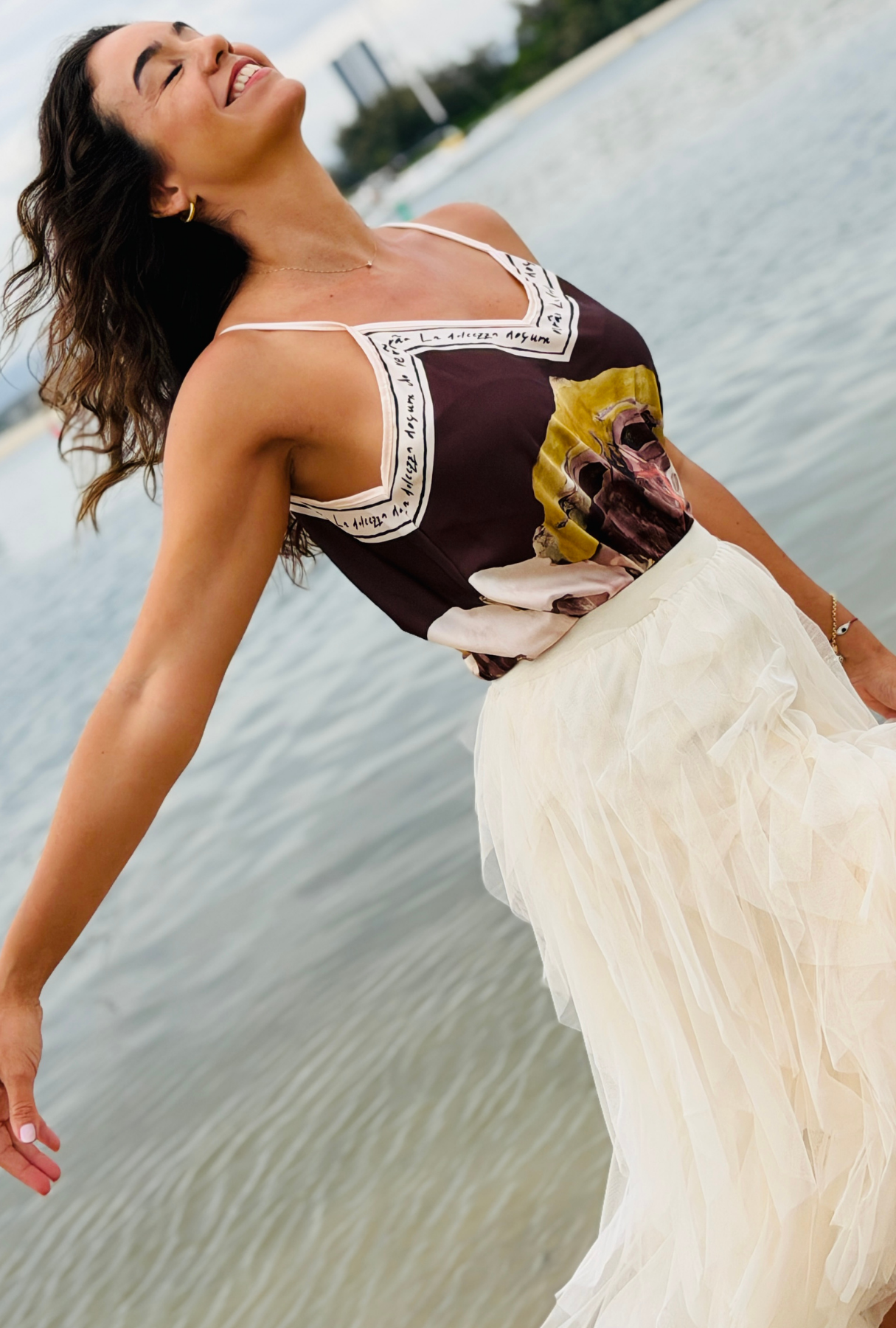The Pretty In Paint Top is a standout piece with an artistic, hand-painted feel that brings colour and individuality to any outfit. Made in Italy from a luxe fabric blend with a soft silk touch, it has a fluid drape that feels light on the body while still offering a refined finish.