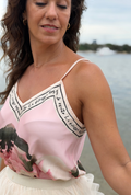 Designed with delicate straps and a relaxed silhouette, this top falls effortlessly without clinging, making it both flattering and easy to wear. The contrast neckline detail adds definition, while the abstract print ensures every colourway feels unique in its own way.