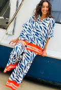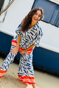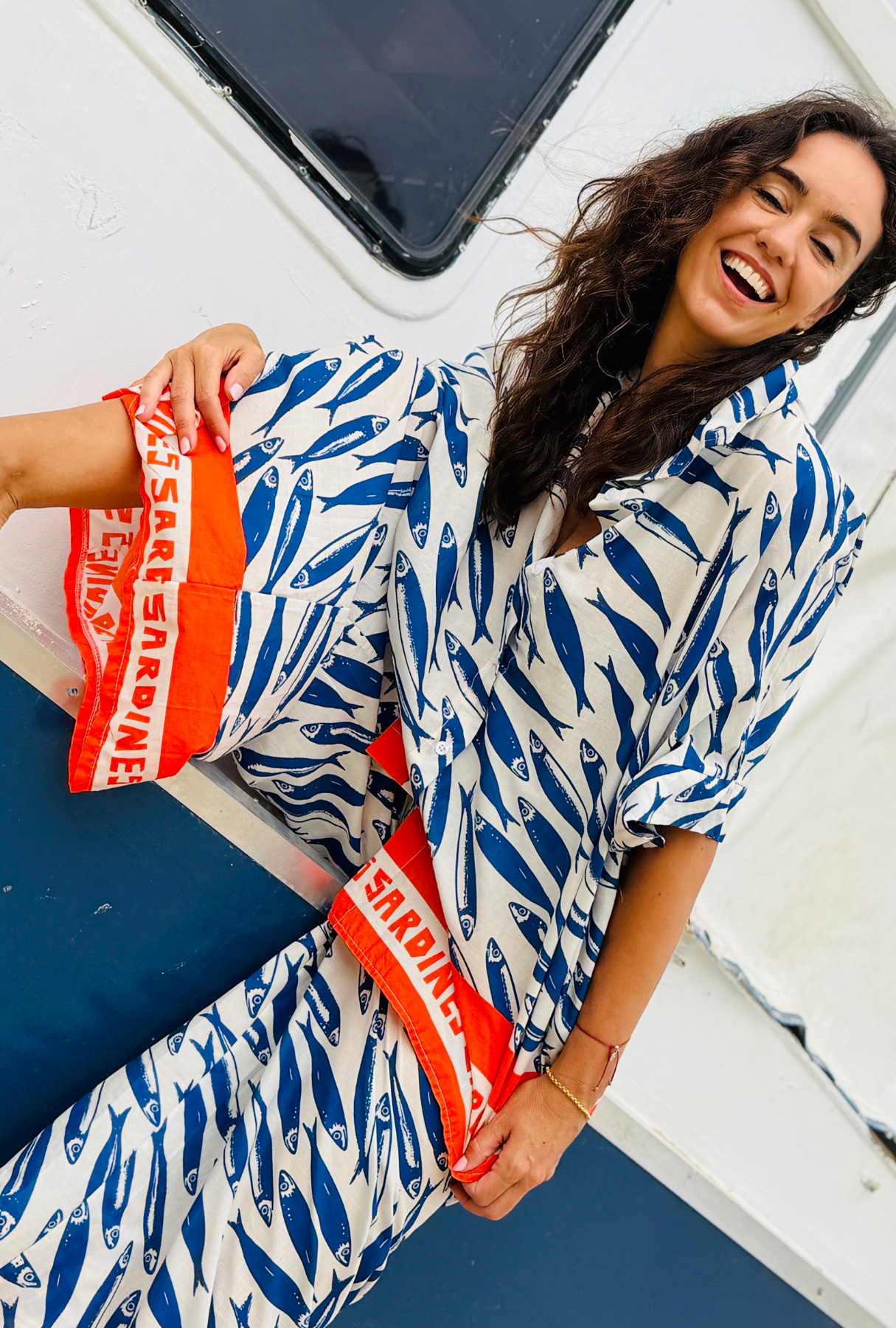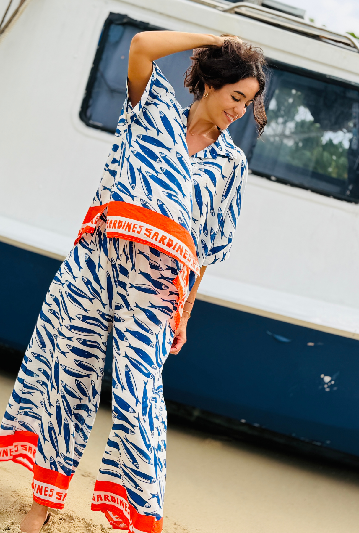 The Something’s Fishy Pant is all about comfort with impact. Made in Italy from soft, lightweight fabric, it features a relaxed wide-leg silhouette that moves freely and feels effortless to wear. The elasticated waistband ensures an easy fit, while the bold fish print and contrast hem detail create a strong visual statement.