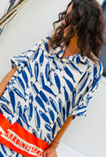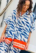 Bold, playful and full of personality, the Something’s Fishy Top is designed to stand out. Made in Italy from lightweight, breathable fabric, it features a relaxed, oversized shape that drapes effortlessly on the body. The button-through front and loose sleeves give it an easy, wearable feel, while the striking fish print and contrast border add a confident, fashion-forward edge.