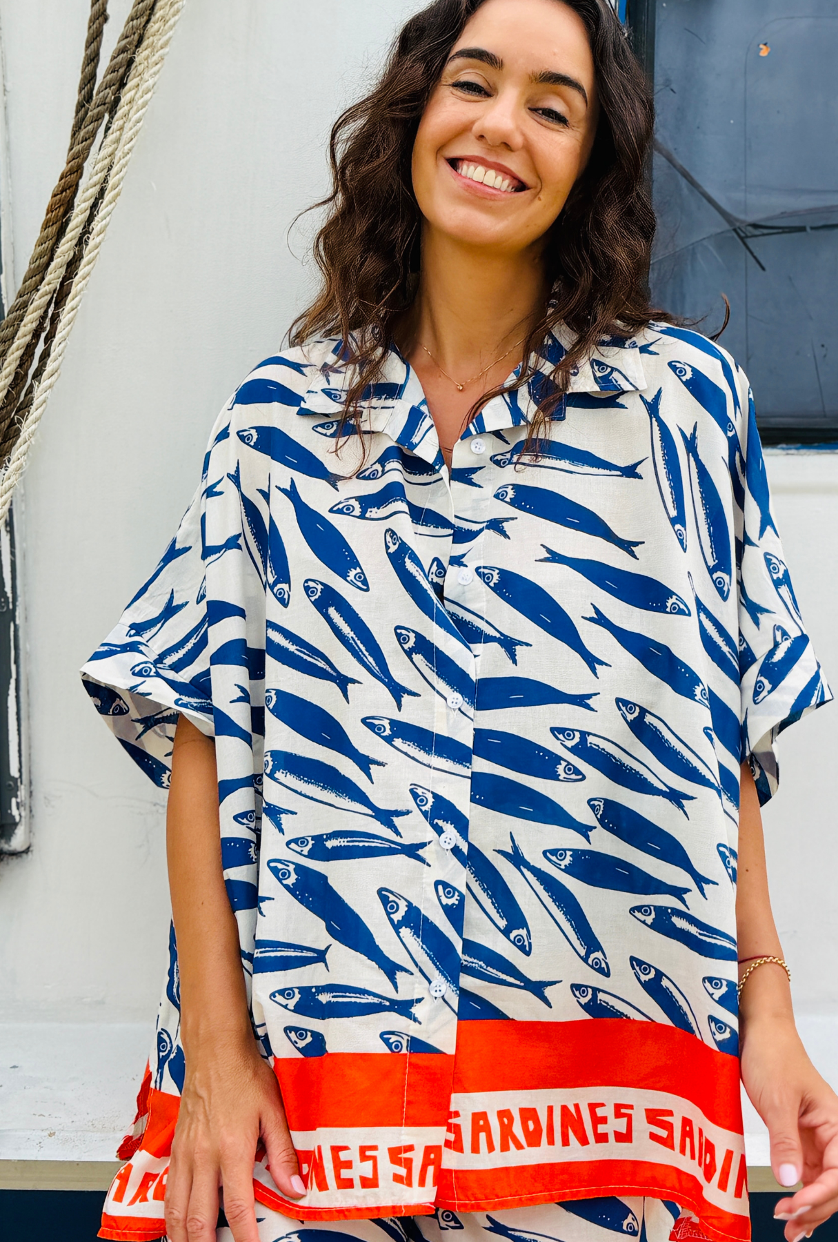 Wear it loose, half-tucked or tied for different looks, or pair it with the matching Something’s Fishy Pant for a coordinated statement set. Also available in other colourways, each with its own unique character. Crafted in Italy with quality and comfort in mind, this is a piece made for fun, expressive dressing.