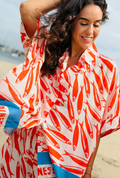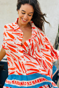 Bold, playful and full of personality, the Something’s Fishy Top is designed to stand out. Made in Italy from lightweight, breathable fabric, it features a relaxed, oversized shape that drapes effortlessly on the body. The button-through front and loose sleeves give it an easy, wearable feel, while the striking fish print and contrast border add a confident, fashion-forward edge.