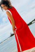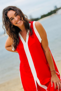 Designed to flatter and flow, this striking dress brings a modern edge to effortless style. Crafted in Italy, the contrasting stripe detail elongates the silhouette and adds graceful movement with every step. The relaxed fit and deep V neckline create an elegant yet easy-to-wear look that transitions beautifully from day to night.